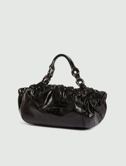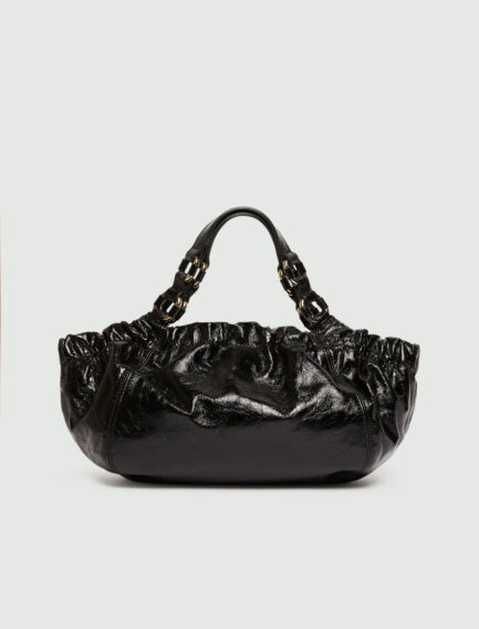 Srednje velika usnjena nakupovalna torba – ČRNA