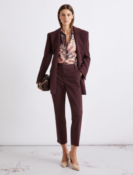 Hlače iz cady tkanine z visokim pasom – BORDO