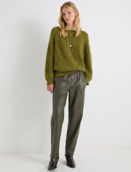 Hlače iz prevlečenega džersija s korenčkovim krojem – VOJAŠKO ZELENA