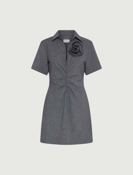 Kratka obleka z broško v obliki cvetja – MELANGE SIVA