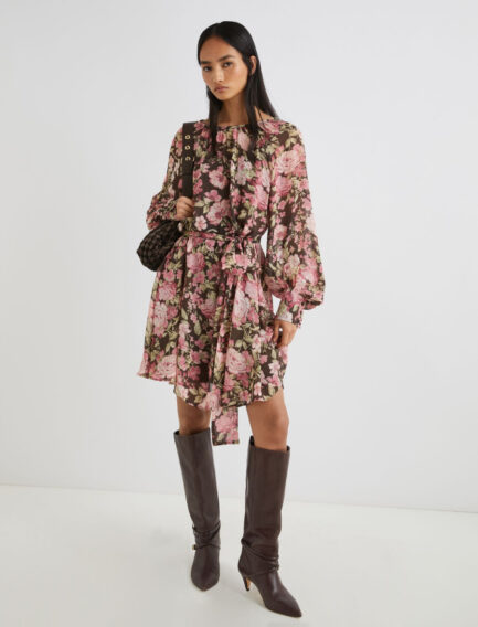 Kratka cvetlična obleka z žoržetom – ČOKOLADA