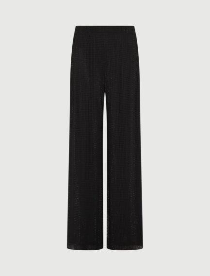 Džersej hlače z detajli iz okrasnih kamnov – ČRNA