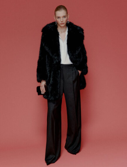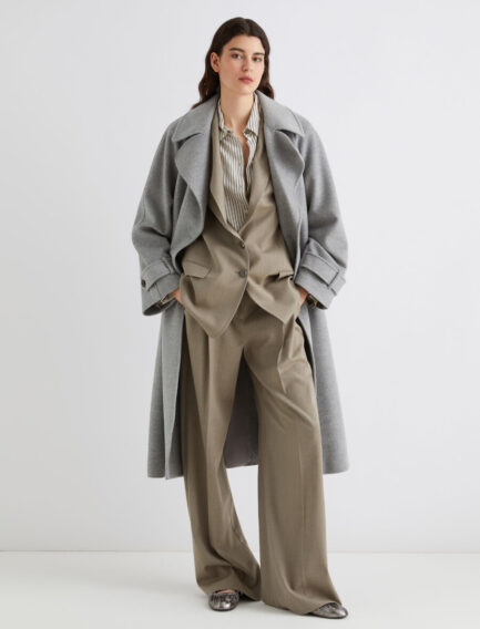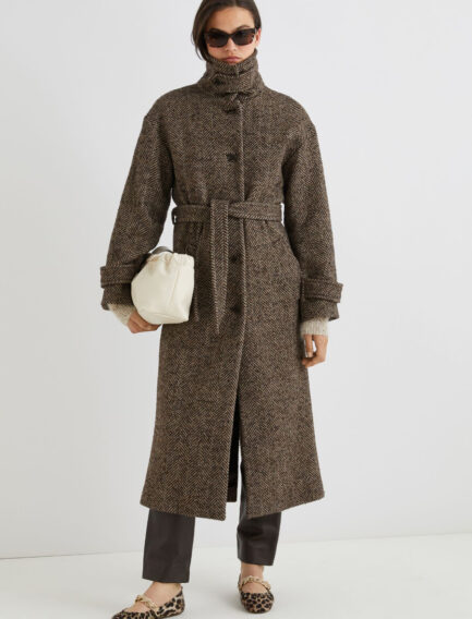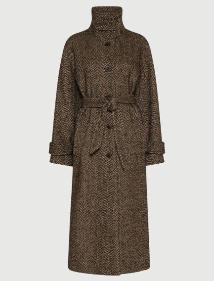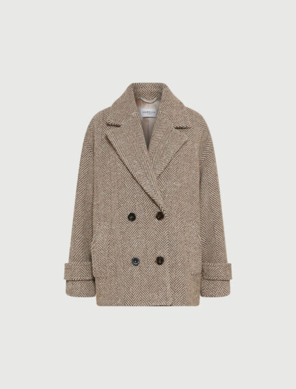 Raven plašč iz mešanice volne z vzorcem ribje kosti – RJAV