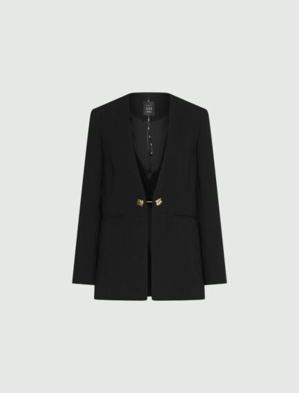 Envers satenasti blazer brez ovratnika – ČRN