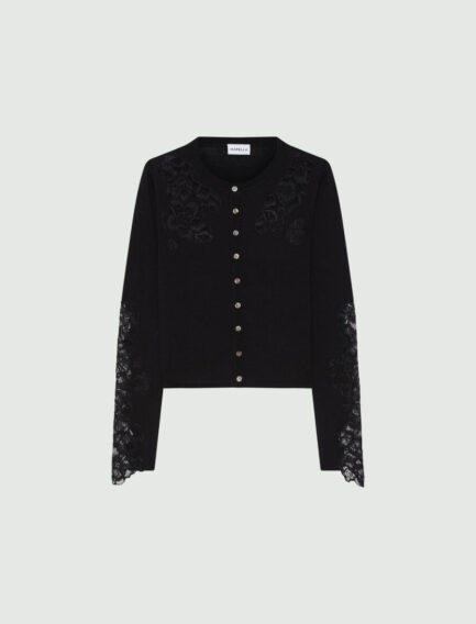 Kardigan s čipkastimi detajli – ČRNA