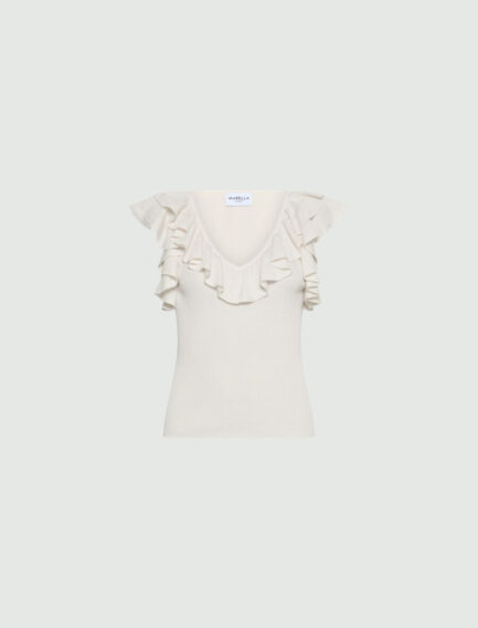 Top z nabranimi finimi rebrastimi pleteninami – KREM