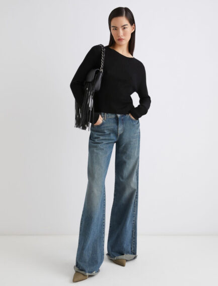Ultralahek pulover z rebrasto pletenino – ČRN
