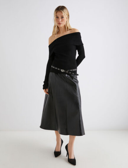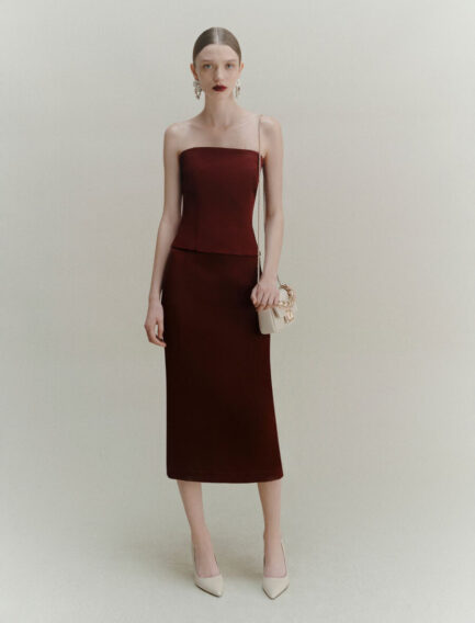 Ravno krojeno raztegljivo krilo iz košarice – RDEČE