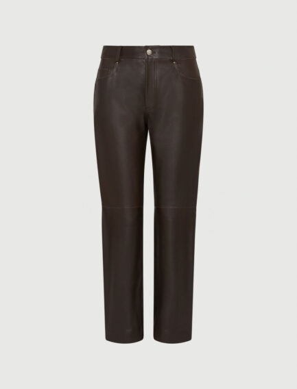 Usnjene hlače s 5 žepi – RJAVE
