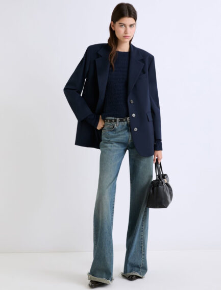 Džersej pulover z dolgimi rokavi – mornarsko moder