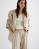 Letošnji blazer se odlično poda k kratkim zgornjim delom in hlačam sproščenega kroja. Strukturirana ramena takoj ustvarijo videz 80-ih, kar spodbuja lahkotno kombiniranje.