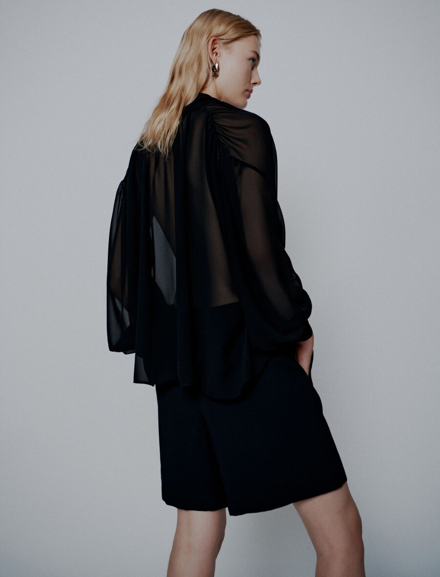 To mehko in elegantno bluzo iz žoržeta lahko nosite s hlačami sproščenega kroja in dodatki v urbanem slogu. Rutica doda ženstven pridih sodobnemu dizajnu.