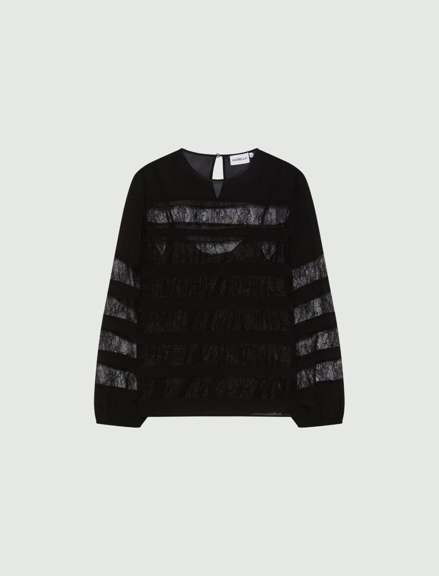 - Bluza iz viskoznega žoržeta s čipkastim pasom