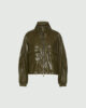 Nova jakna sproščenega kroja se ponaša z detajli, ki so navdihnjeni z modeli, in mehko prevlečeno tkanino iz džersija za usnjen učinek. Poiščite popolno ravnovesje z bluzami iz krepa in padajočimi krili za kontrastno poudarjen stil.
