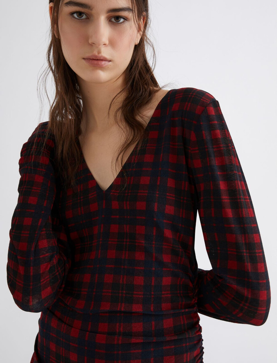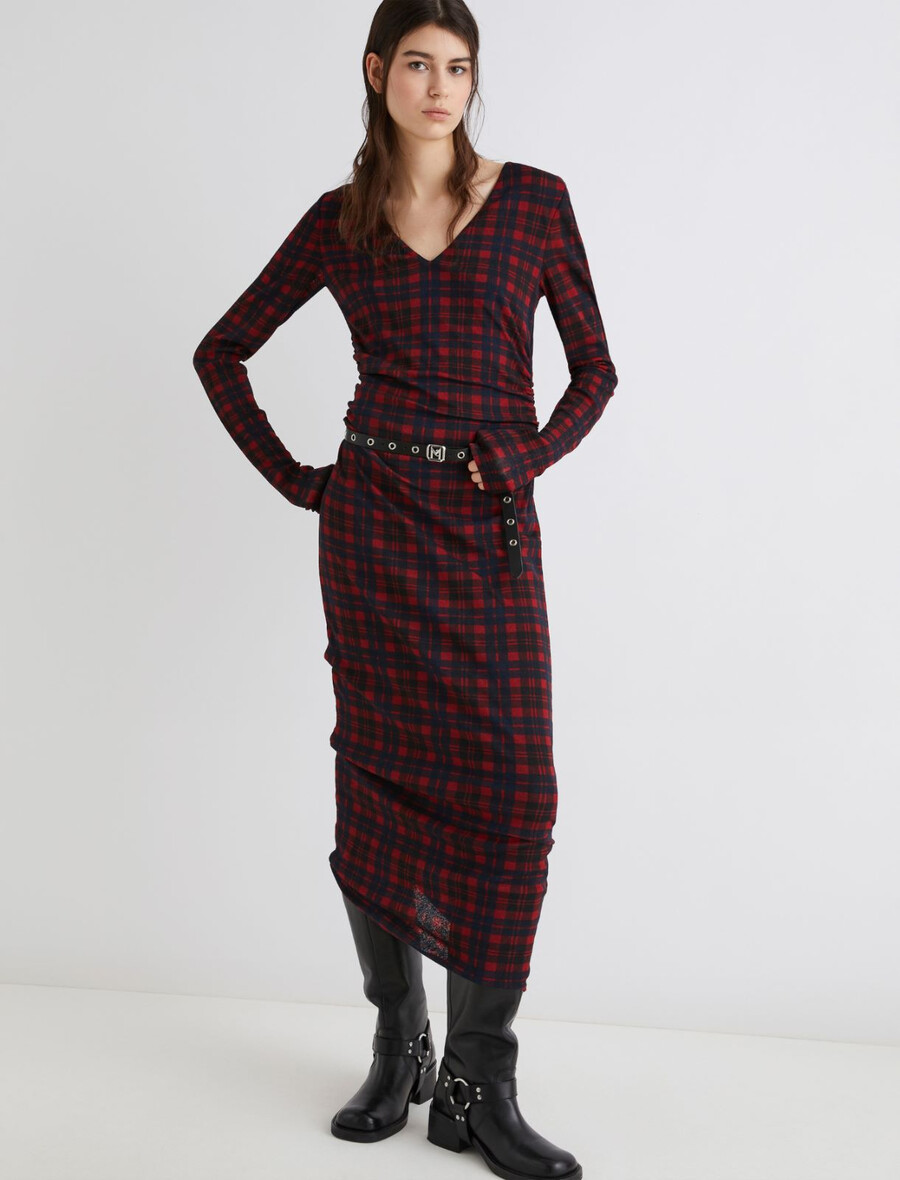 Metropolitanska različica obleke iz tila in džersija z ravnim krojem in sveže nabranimi detajli ob straneh. Nepodložena za dodatno lahkotnost in se odlično poda k motorističnim škornjem in pasu z grobim pasom.