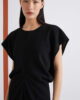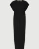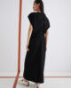 S čistim krojem in osrednjim naborkom, ki ustvarja gibanje, ta obleka samozavestno lebdi med glamurjem in avantgardo. Kimono rokavi dodajo sodoben pridih.