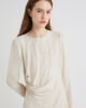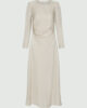 Nežna tkanina z videzom naboranosti daje tej obleki sodobno teksturo. Model se ponaša z čistim krojem, ozkim zgornjim delom in majhnim stranskim naborkom za dinamičen pridih.