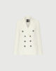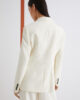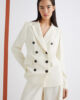 Ta dvoredni krojeni suknjič se odlikuje po svojem drznem značaju in metropolitanskem vzdušju. Sijajen pridih satena na izrezu spominja na eleganco smokinga in ustvarja model, ki ga boste nosili znova in znova s hlačami in krili v tonu.