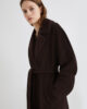 • Ovratnik z reverjem, dvojno zapenjanje z gumbi in pasom