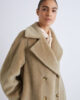 Nič vas ne bo bolje ovijalo kot ta plašč iz volnene pletenine. Izrazit kosmat pridih poudarja bogastvo materiala, dvojno zapenjanje pa doda pridih kroja.