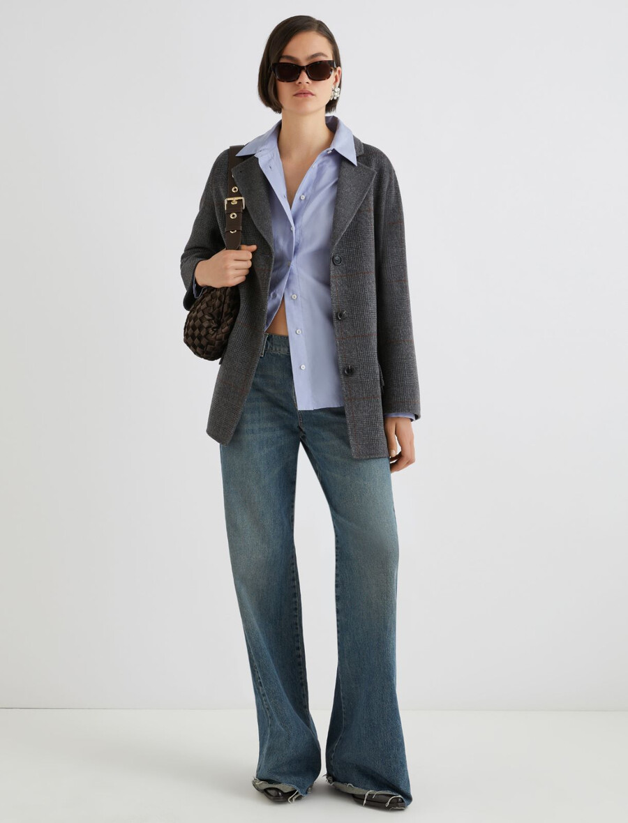 Ta dvostranska jakna iz čiste volne je vsestranska izbira za mesto: mehak in oprijet model se ponaša s subtilnim oblikovanjem na bokih za sodobno silhueto.