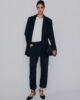 Te urbane in moderne kavbojke s pridihom divjega kroja bodo našle častno mesto v vaši garderobi za izvirne kombinacije. En primer so krojeni suknjič in hlače z zaponko.