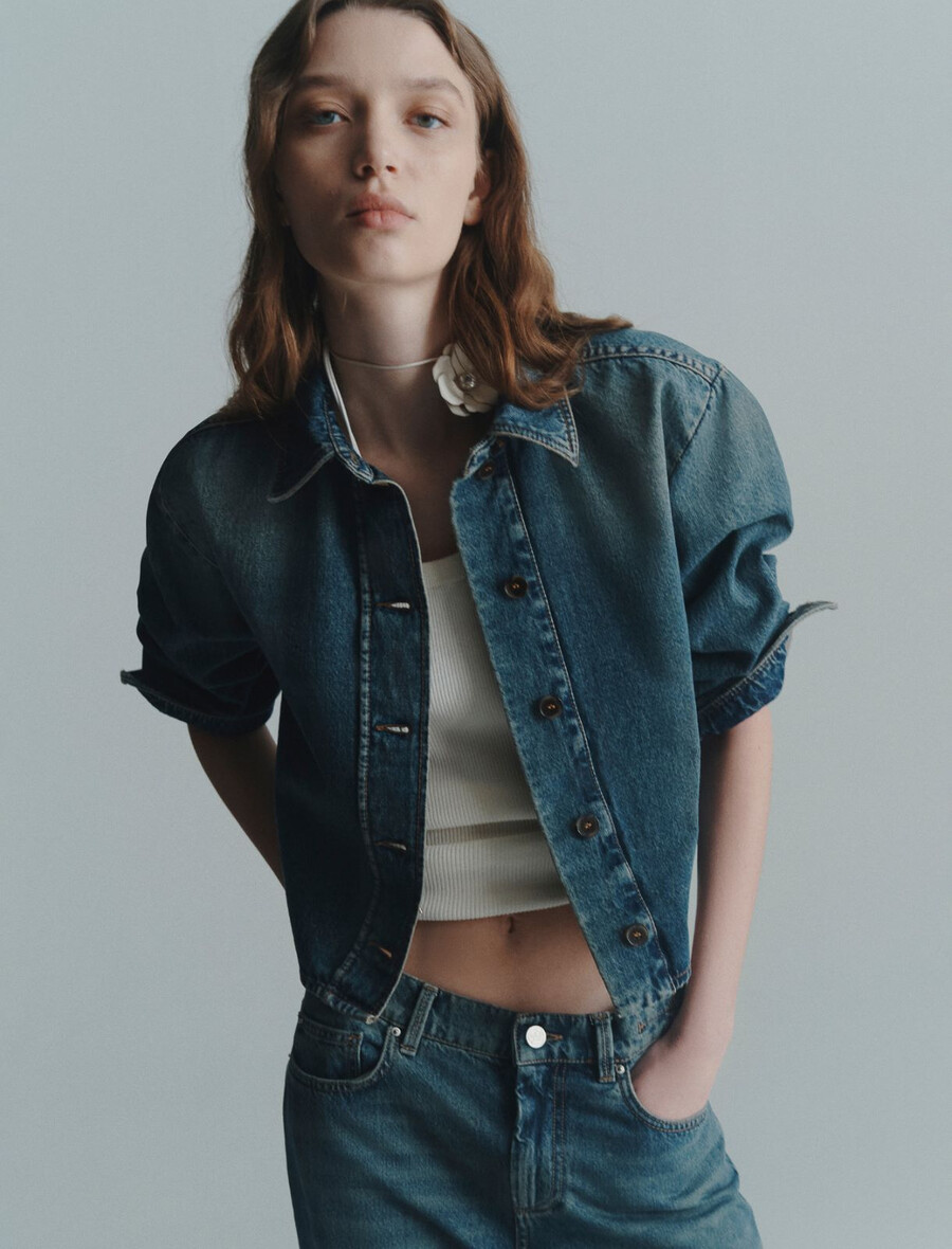 - Vintage srajca iz džinsa z vzorcem pranja, ustvarjena v sodelovanju s Candiani Denim.