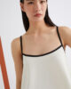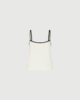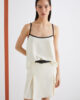 Lahek satenasti top brez rokavov s kontrastnimi obrobami za športen pridih. Za mestni videz, posvečen lahkotnosti, ga kombinirajte z ujemajočim se nagubanim krilom in krep bomber jakno.
