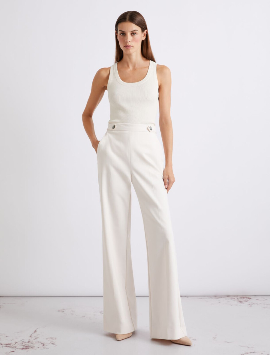 Mestna elegantna različica sproščenih raztegljivih hlač: spomladanski obvezen kos, ki je izjemno vsestranski z majico in lahkim kratkim plaščem.