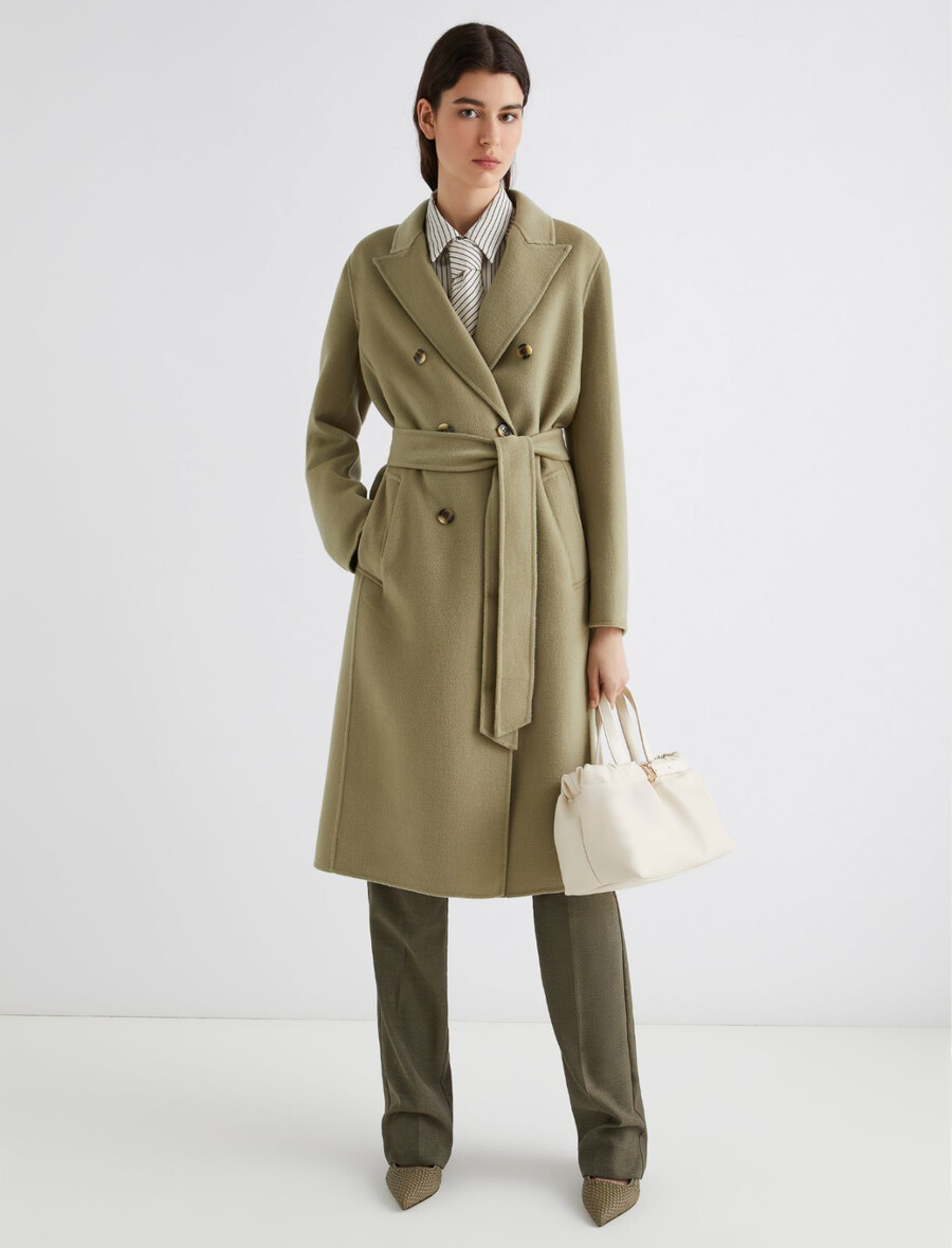 - Hlače iz tekoče keper tkanine z videzom ribje kosti in mešanice volne
