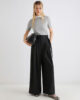 Kul različica hlač z visokim pasom in širokim krojem za poenostavljeno silhueto. Pas s kovinsko zaponko doda videzu popoln odmerek sproščenosti.
