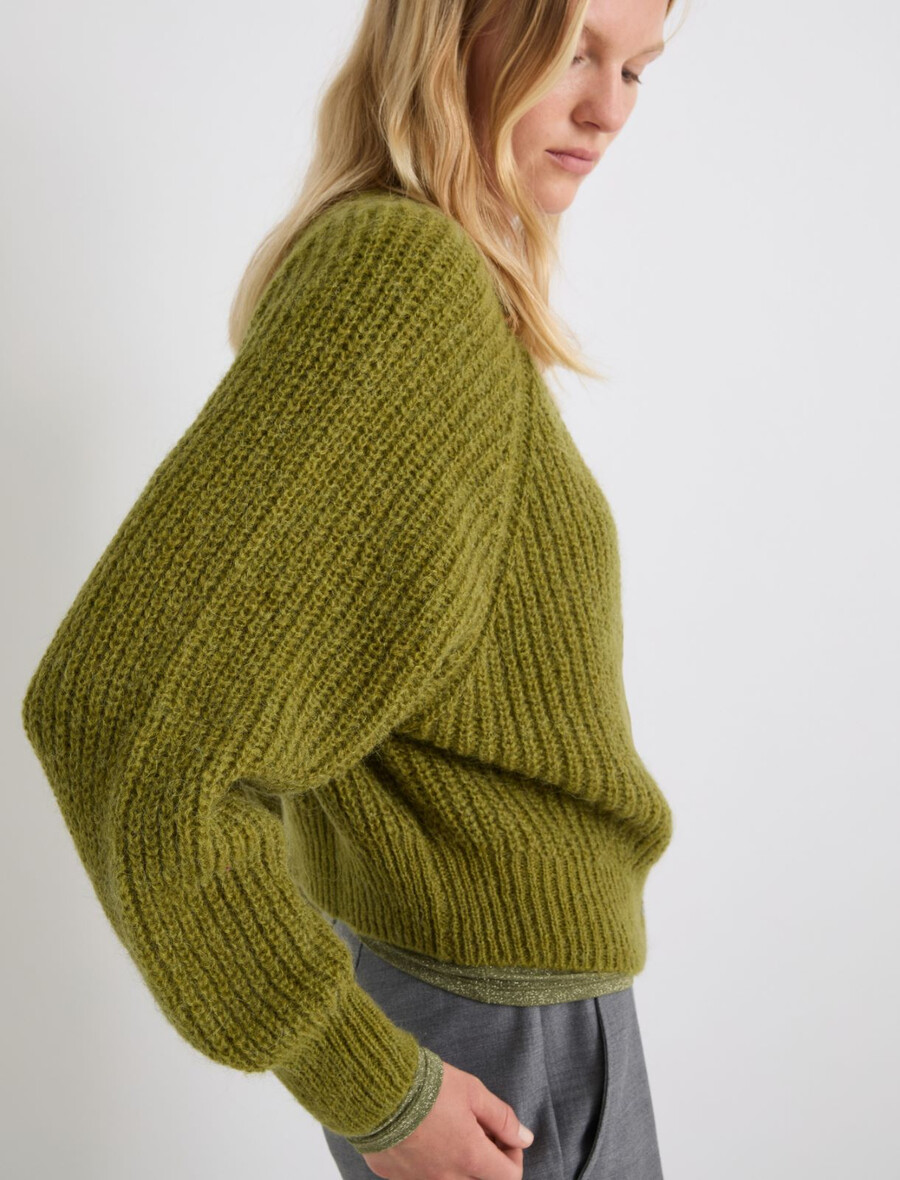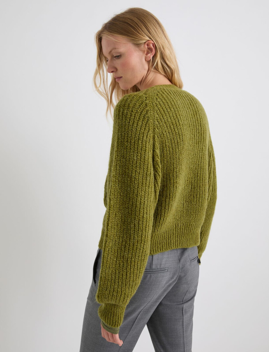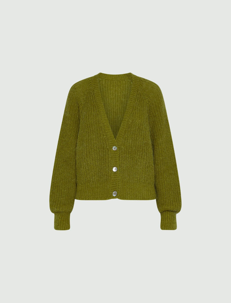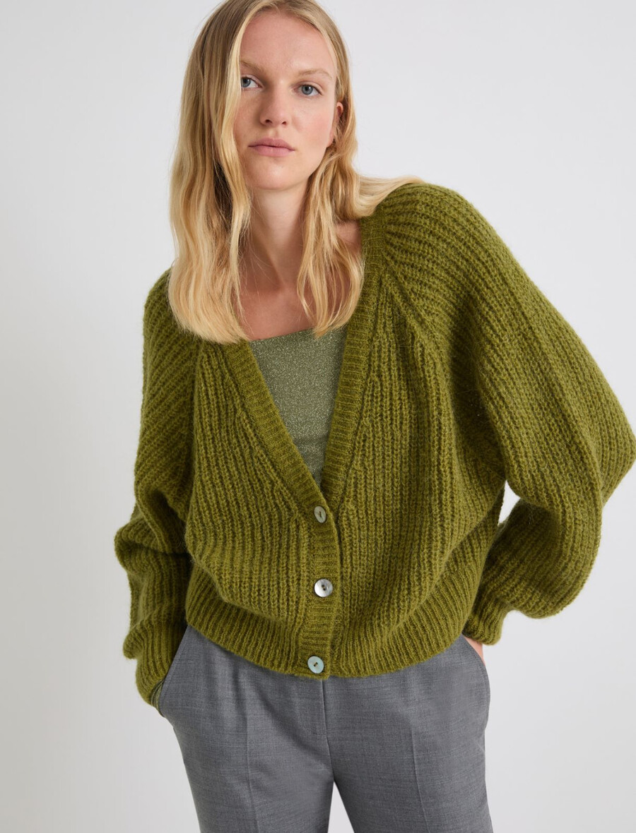 Kardigan iz mešanice alpake – JABOLČNO ZELEN