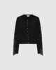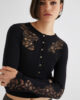 Čutna različica raztegljivega kardigana z ozkim, ženstvenim krojem. Čipkasti vložki in biserni gumbi dodajo popoln odmerek ženstvenosti. Izgled dopolnite z usnjenim mini krilom.
