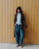Udobne kavbojke ‘mom-fit’ z edinstvenim slogom: poskusite jih s srajco, nabranim svilenim zgornjim delom in drzno bižuterijo iz kolekcije.