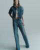 Urbano razpoloženje s prefinjenim pridihom: nove kavbojke z nizkim pasom in širokimi hlačnicami s klasičnim dizajnom s petimi žepi. Ta metropolitanski kos garderobe je popoln za vsako priložnost.