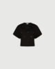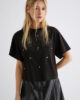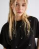 Ta nova majica se ponaša s skrajšanim pasom in kristalnimi aplikacijami na sprednji strani, ki dodajo glamurozen pridih najbolj ležernemu modnemu kosu. Kombinirajte jo z razširjenim krilom, vašimi najljubšimi kavbojkami ali suknjičem.