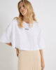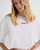 Ponovno osvežen esencialni kos: klasična majica iz čistega bombažnega džersija je bila poživljena z oglatim krojem, spuščenimi rameni in odrezanim pasom. Minimalistična, a okrašena z vezenim logotipom na sprednji strani.