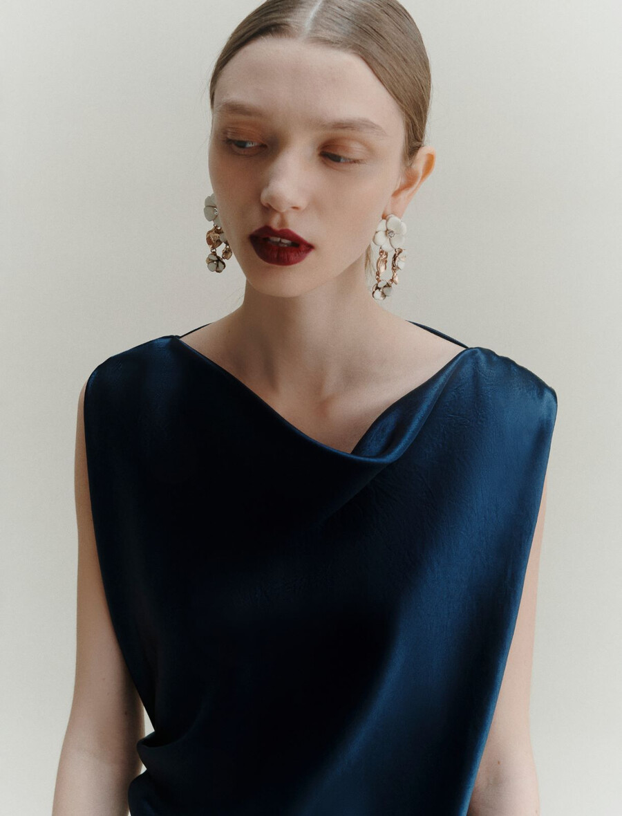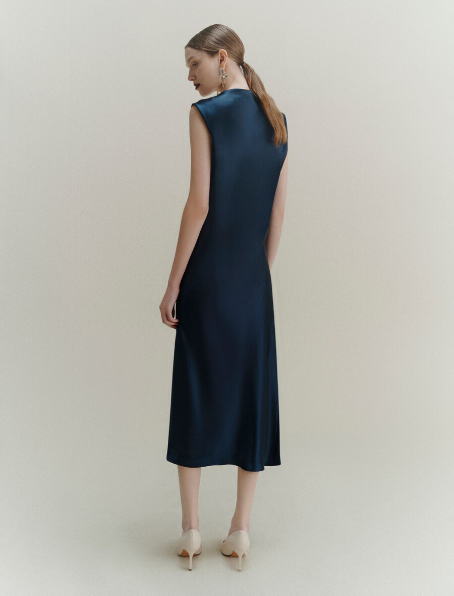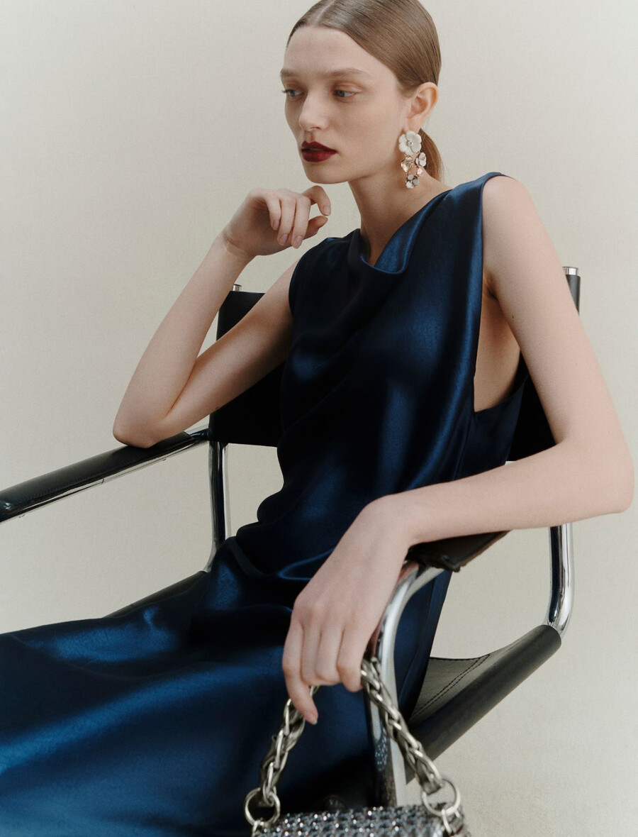 Zasnovana z mislijo na najbolj nonšalantne priložnosti: ta obleka je idealna za dnevno ali večerno nošenje. Rahlo nagubana tkanina ustvarja dimenzionalnost in ji daje takojšen eleganten čar.
