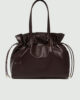 Ta velika in prostorna torba je idealna izbira za mestno življenje. Zapenjanje z vrvico doda subtilne nabrane detajle, ki poudarjajo bogate dele napa usnja.