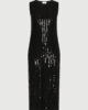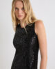 Bleščeča plat mode: nova pletena obleka brez rokavov iz bukléja z vezenimi bleščicami za sijoč učinek. Oprijeto silhueto ustvarjajo laskavi konturirani naborki in gubani.