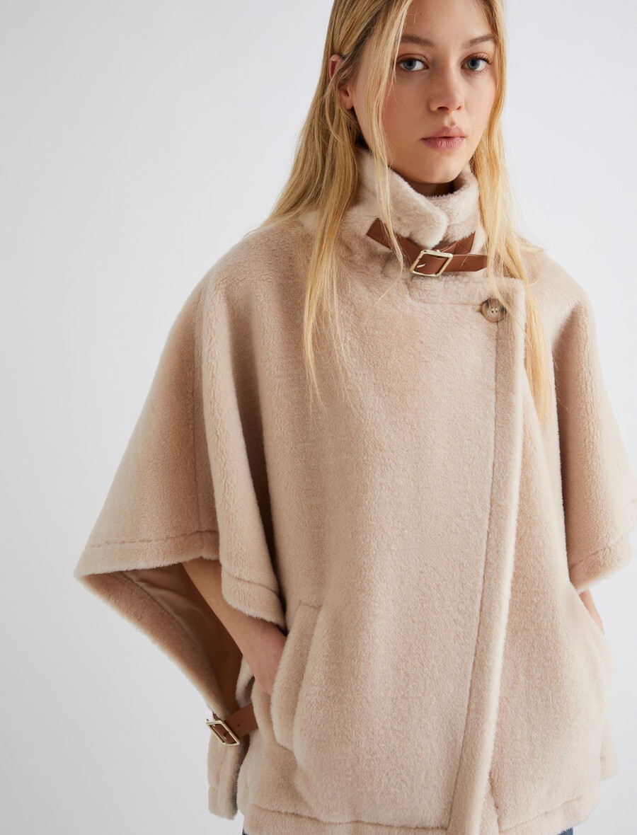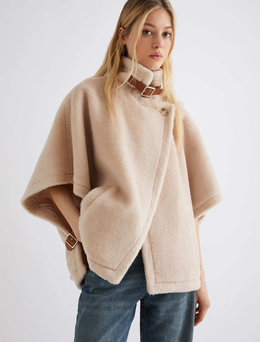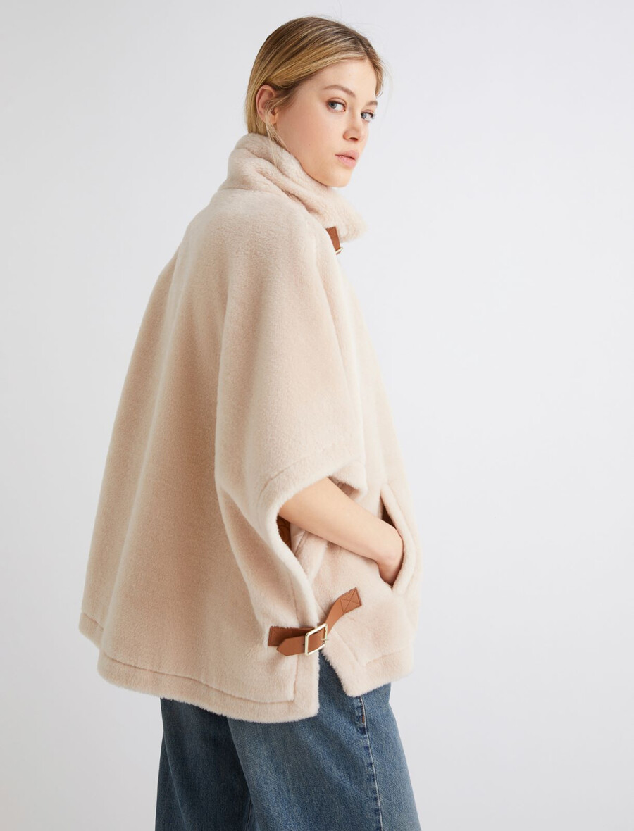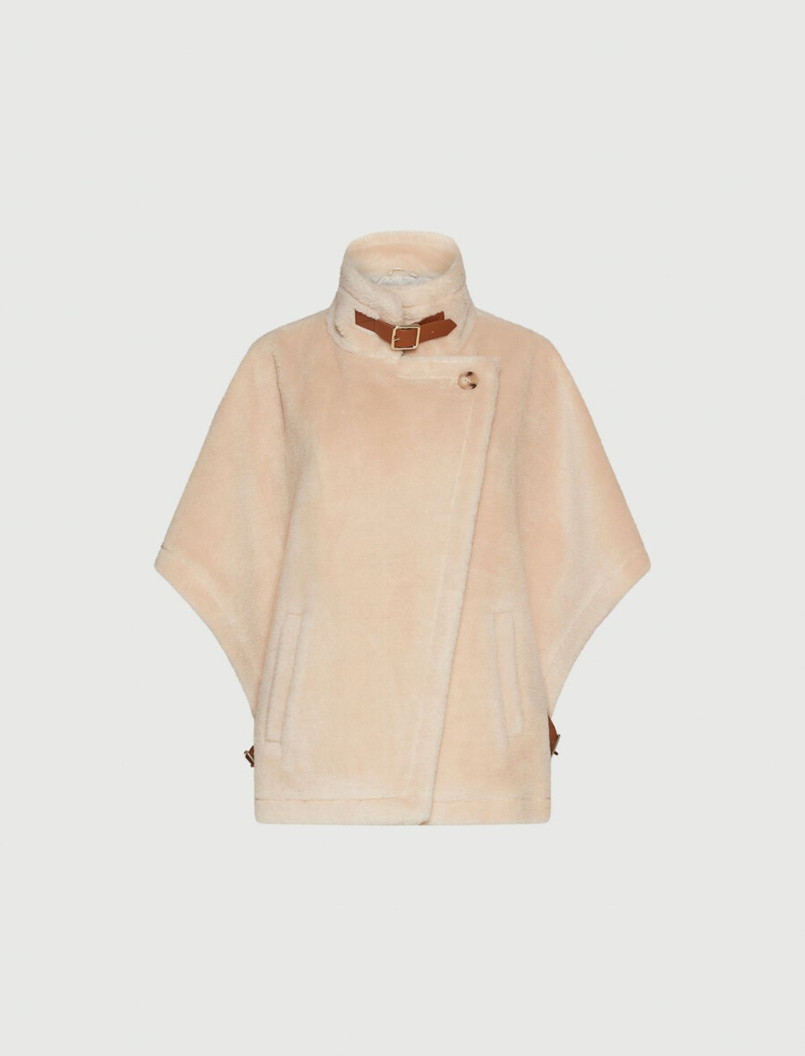 Iščete kul dodatek, ki združuje damski kroj z modnimi materiali? Predstavljamo vam novo ogrinjalo iz krznene tkanine z jezičkom na vratu in ob straneh za prilagoditev prileganja.