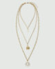 Ta nastavljiva trojna ogrlica, okrašena z obeski, bo na vašem dekolteju metala zlate leske. Popolna je z dolgo obleko z volančki, boemsko srajco ali puloverji sproščenega kroja te sezone.