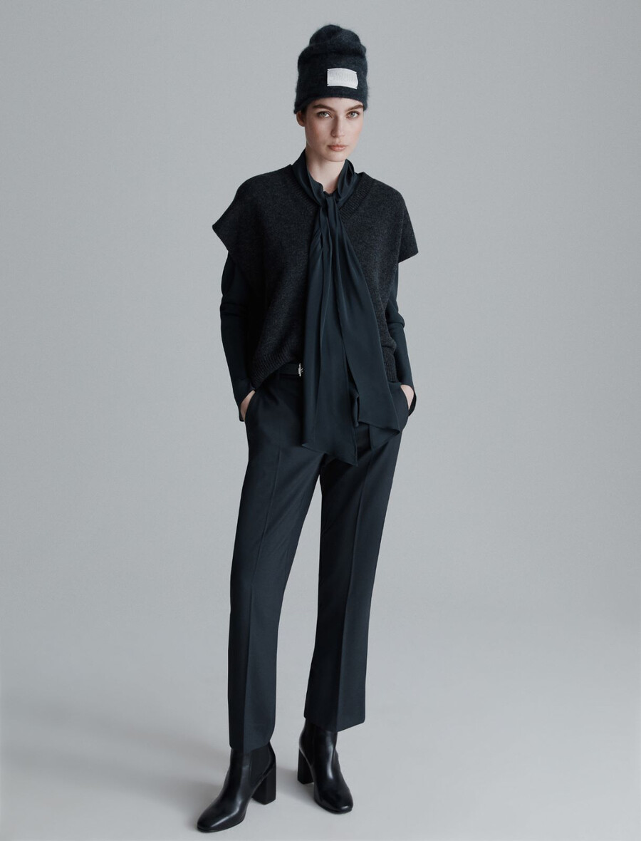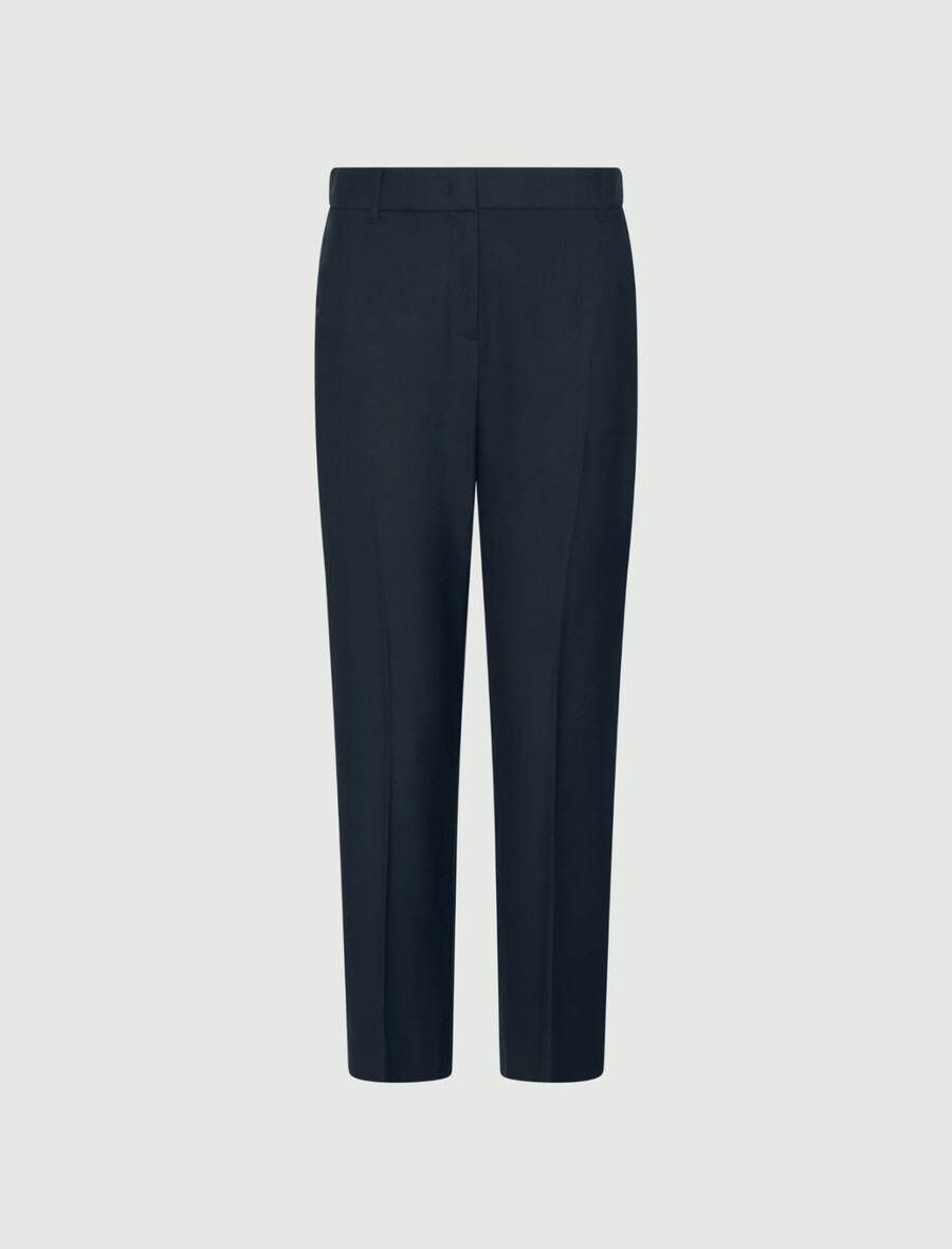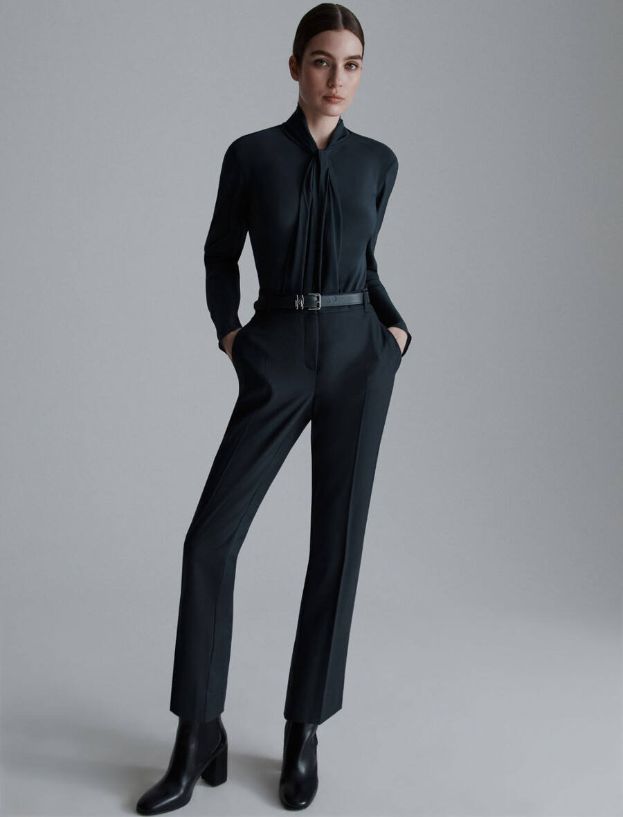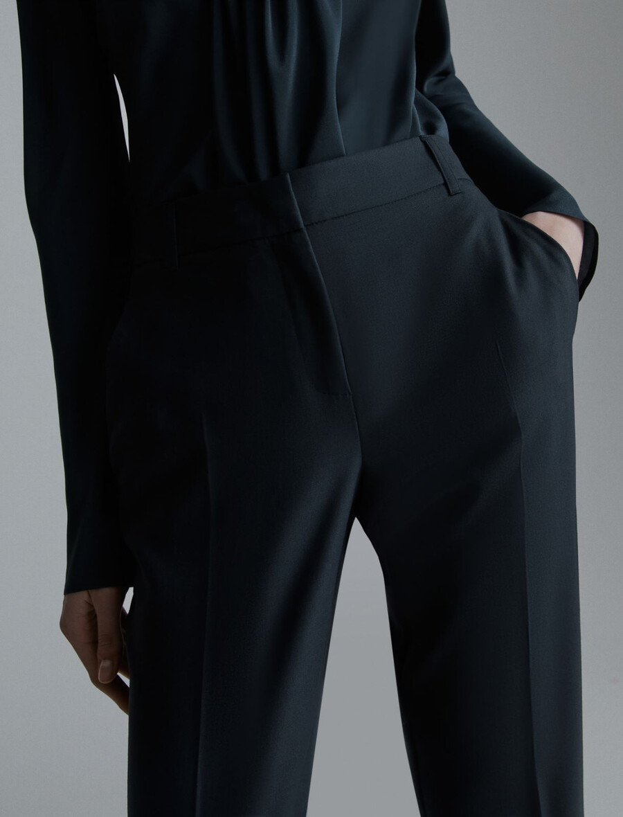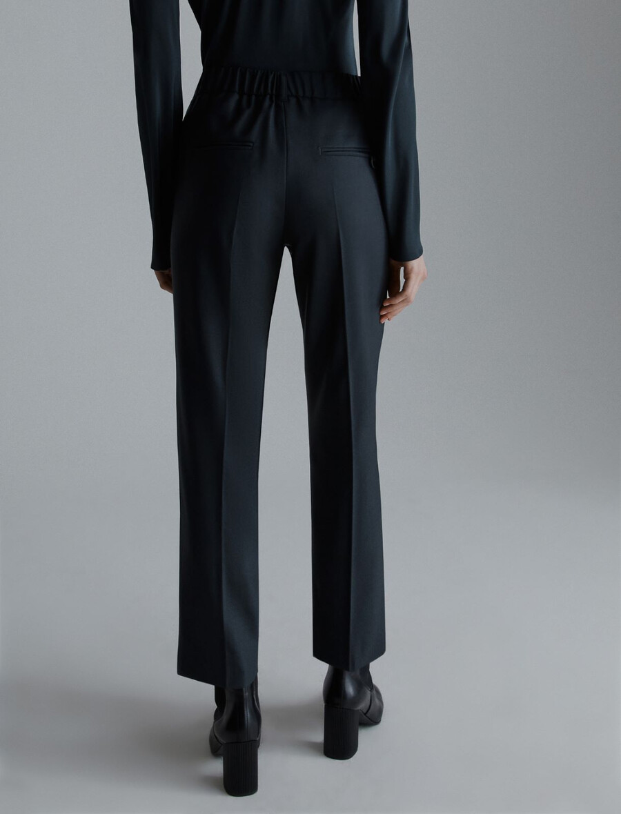 Oprijet kroj za zoženje silhuete: te gabardenske hlače raziskujejo svet možnosti, zahvaljujoč ozkim hlačnicam in elastičnemu pasu zadaj. Za videz, ki je pripravljen za na pot, dodajte svileno srajco in gležnjarje.