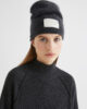 Ta mehka in tanka nova kapa iz mešanice kašmirja je okrašena z veliko etiketo blagovne znamke.