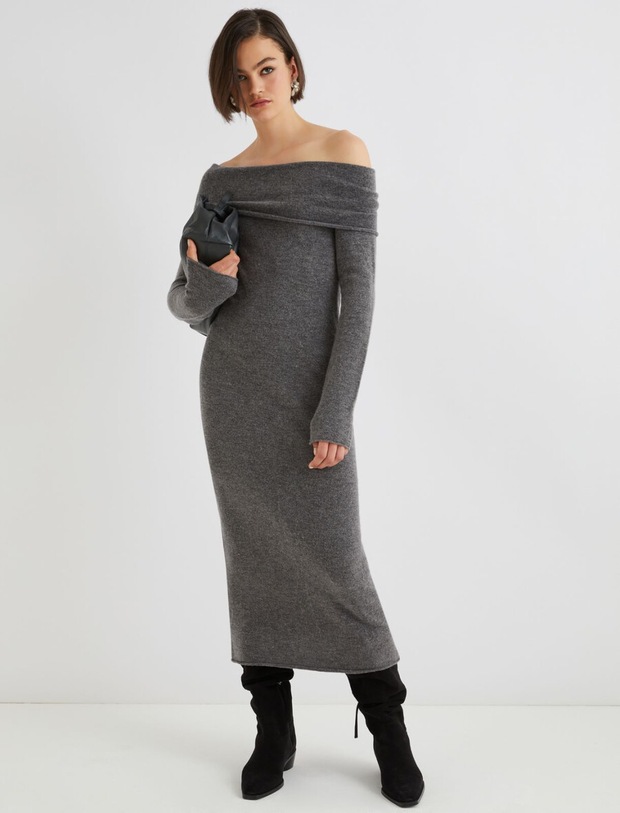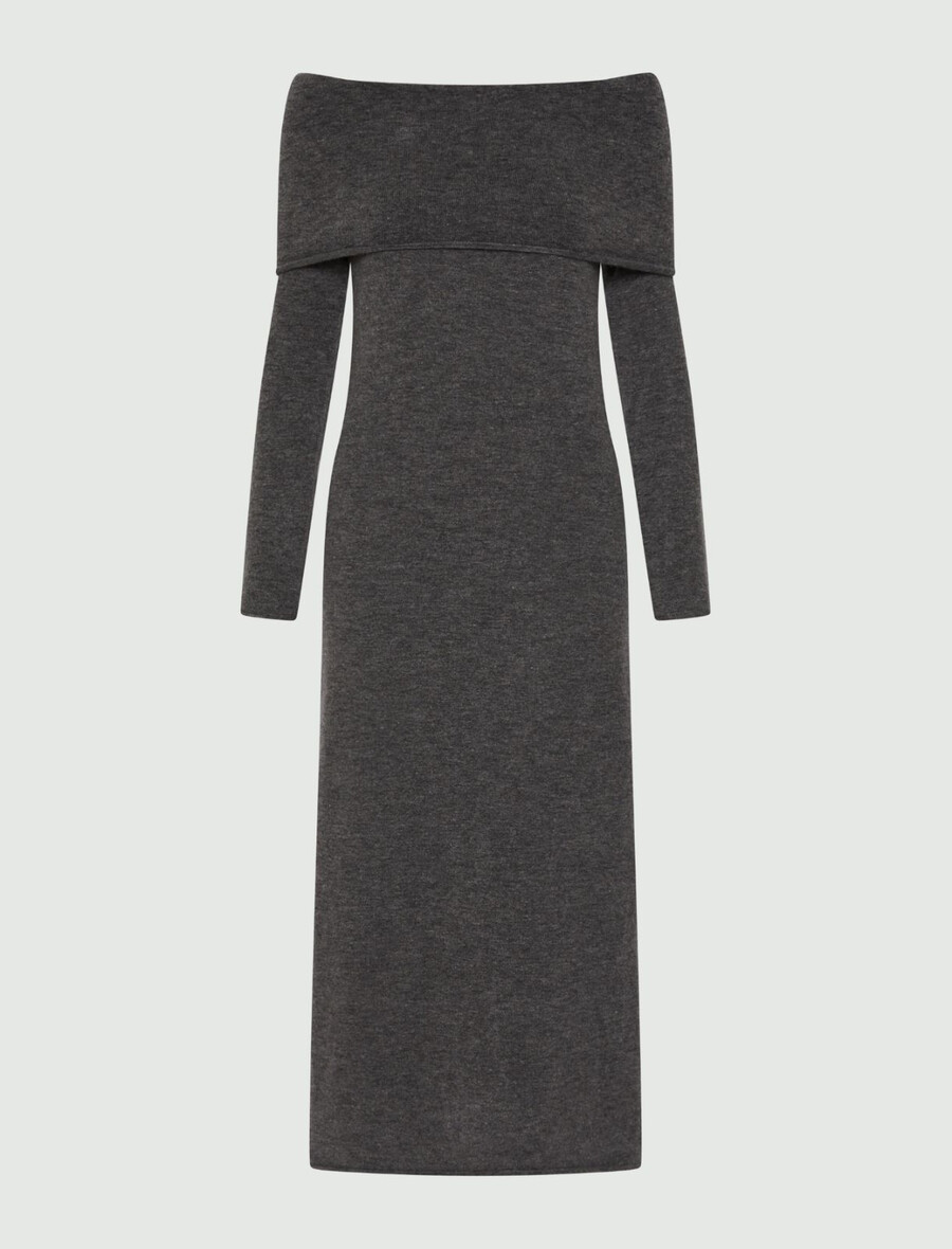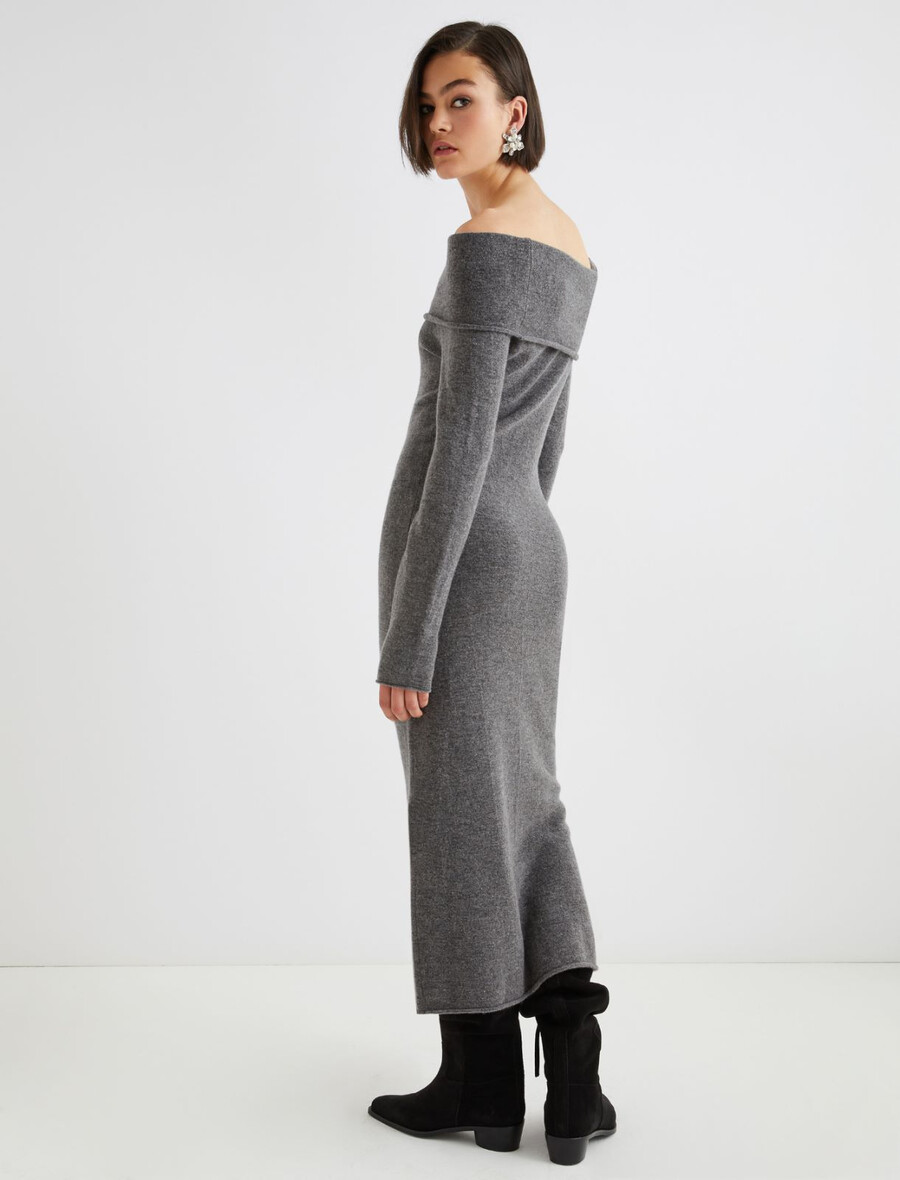 Pletena obleka iz merino tkanine – MELANGE SIVA