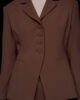 Ta blazer iz krep tkanine se oprime postave in poudari novo ženstvenost. Sijajni detajli na reverjih in prekriti gumbi prikličejo v spomin prefinjene podrobnosti za vedno brezhiben videz.