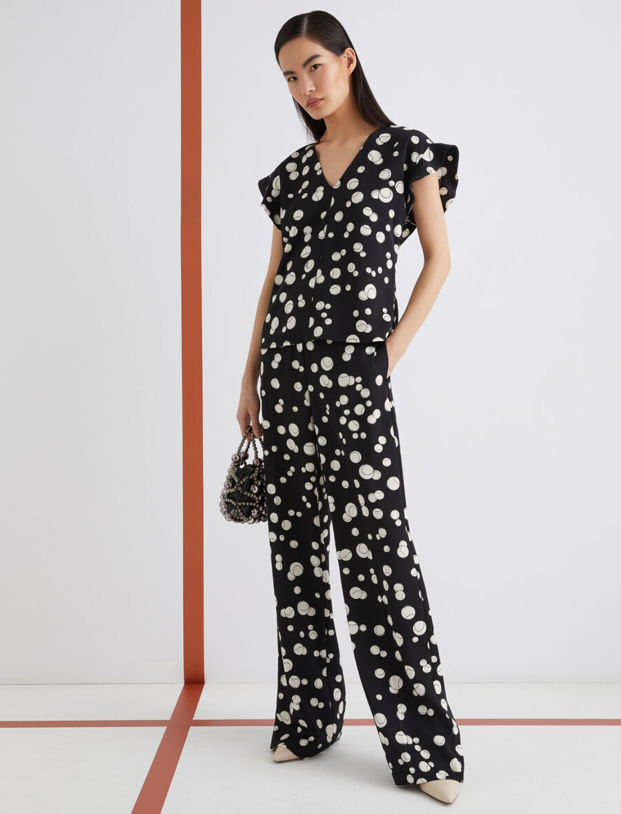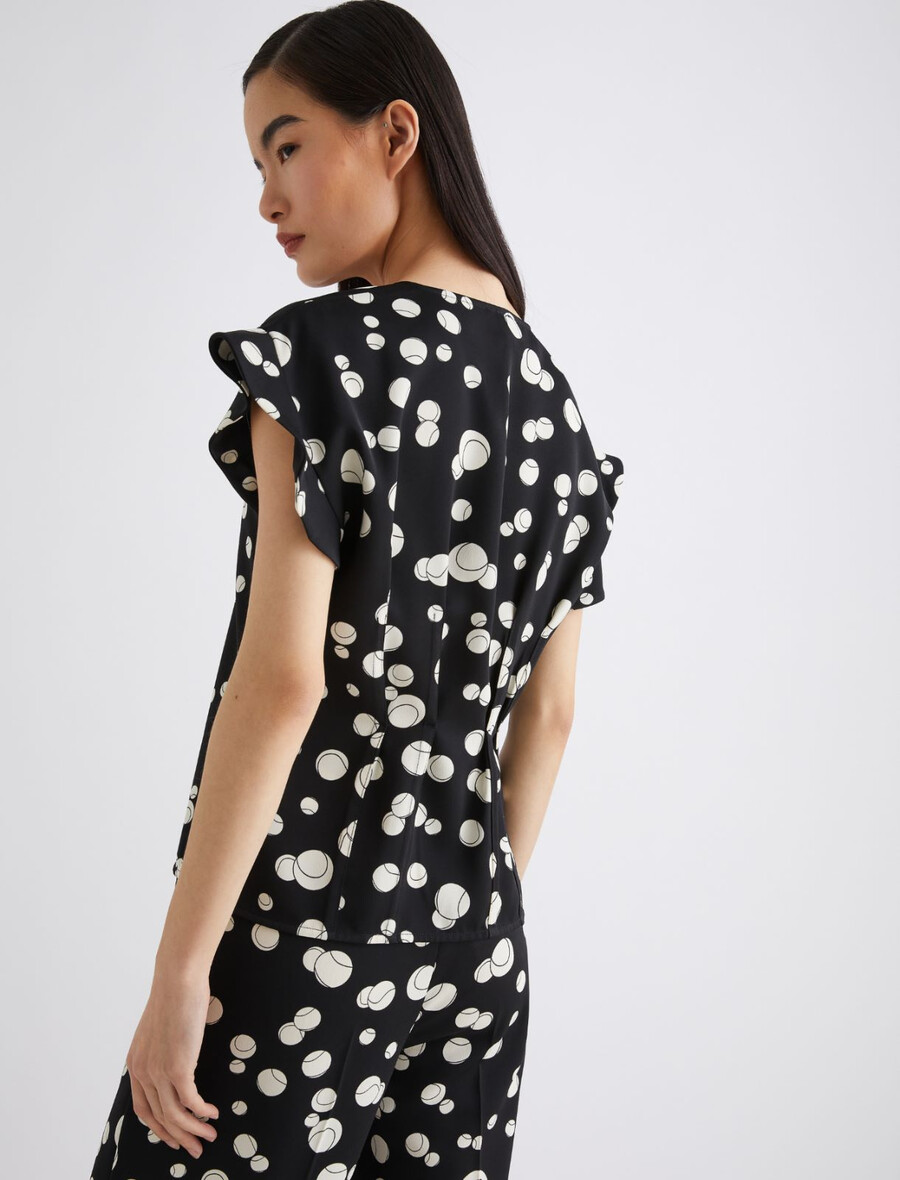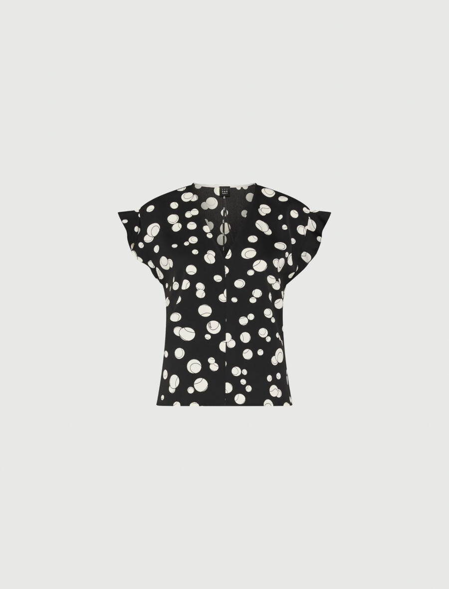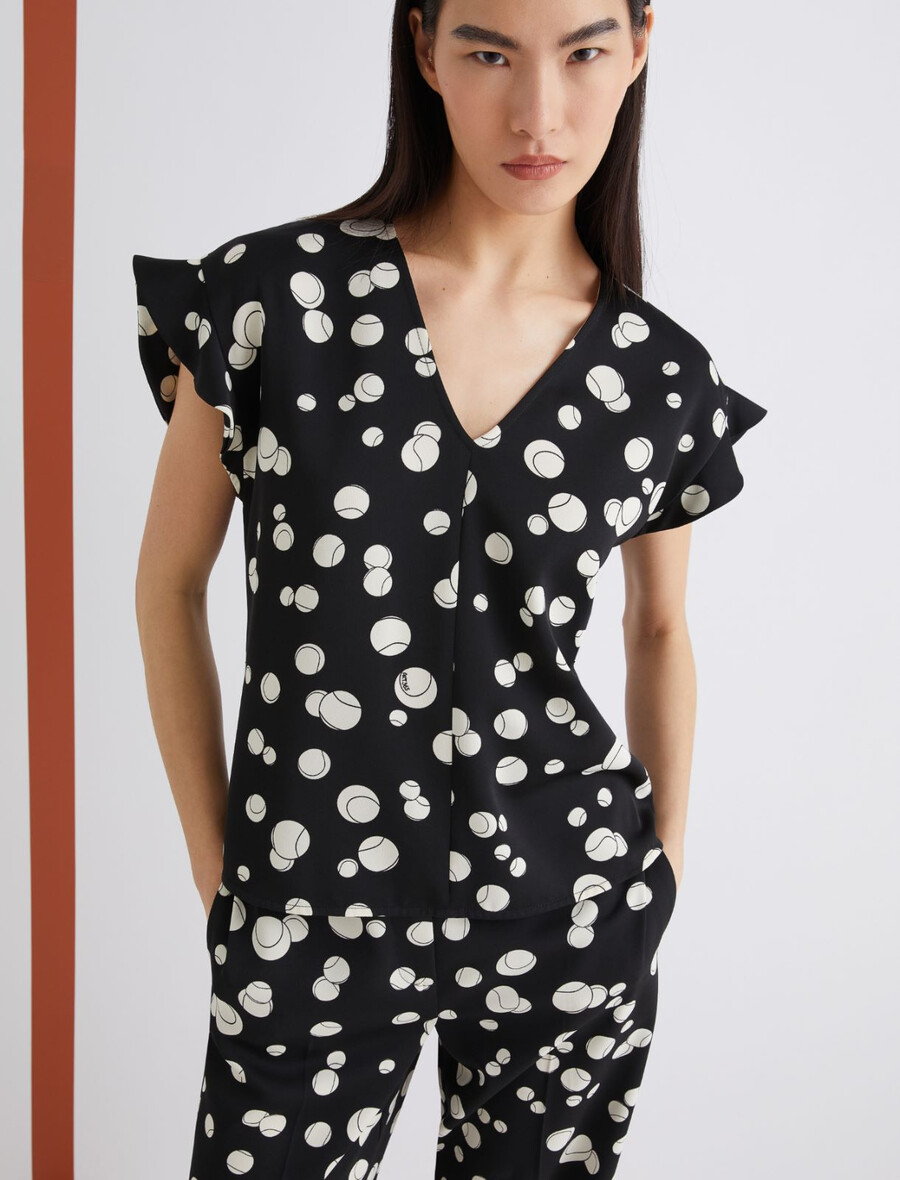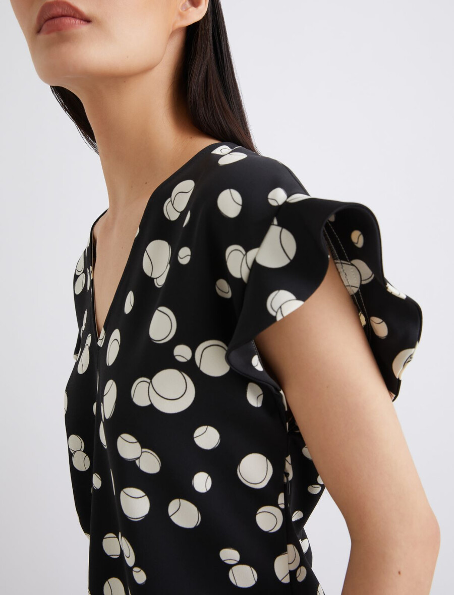 - Potiskana satenasta bluza z detajlom stroja za 365 žogic