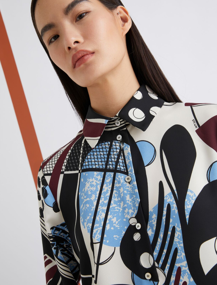 Brezhibna v pisarni in popolna za vsako priložnost: ta lahka satenasta srajca bo postala osrednji del vašega vsakdanjega videza. Okrašena z novim potiskom “Ball machine”, ki vašim oblačilom doda lahkoten in barvit pridih.