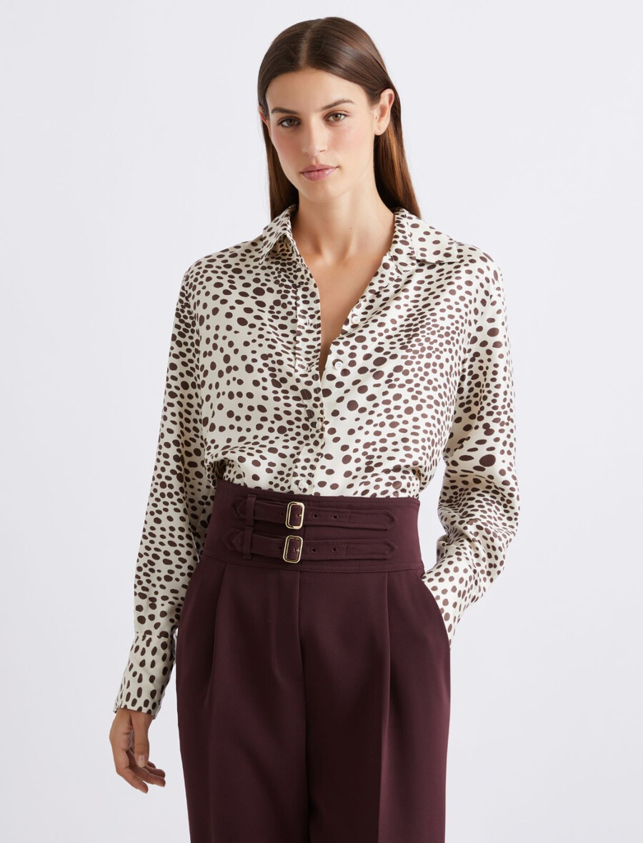 Potiskana svilena keper srajca – KREMNA