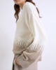 Ta novi pulover sproščenega kroja se odlikuje po elegantnih odtenkih in všitih detajlih. Spuščena ramena in manšete iz lureksa vzbujajo novo urbano prefinjenost.